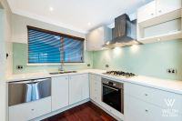 *Kitchen with glass splashback, gas cooking and drawer dishwasher