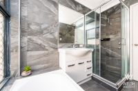 • Modern kitchen with stone benchtops