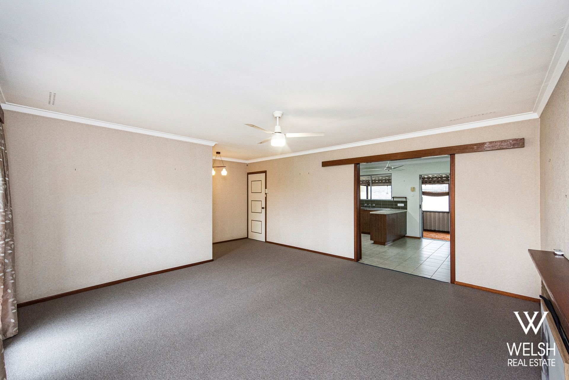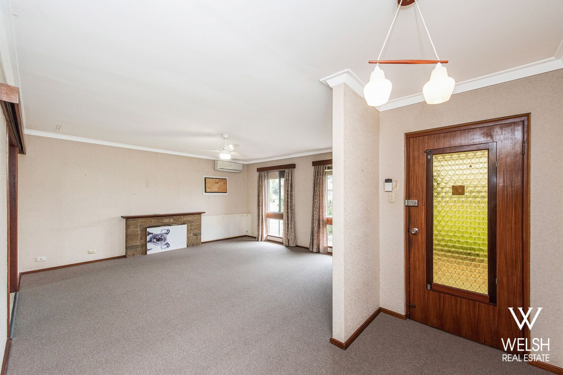 * Large separate front living room with updated carpets, ceiling fan and split system air conditioning